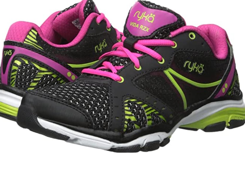 Victoria, I wear these Merrell Trail runner Mag 9 for Outside workouts, and the Ryka Cross Trainer inside, the Ryka I bought was a really good price for the quality of shoe. Both are very light weight, yet offer good arch support and shock absorption.