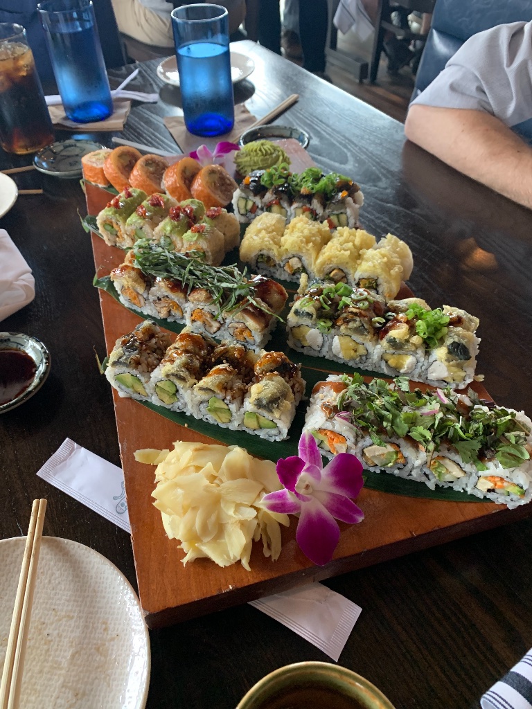 This restaurant is near the Keystone Fashion Mall, which is a bit far but so worth the drive! My friend and I are both vegan and haven't had the opportunity to order a bunch of types and share with others. There vegan sushi is unique and even though I had it last night, I'm craving it again. My favorite rolls were the Crunchy Cabbage, Cowgirl, and Prince Roll.
