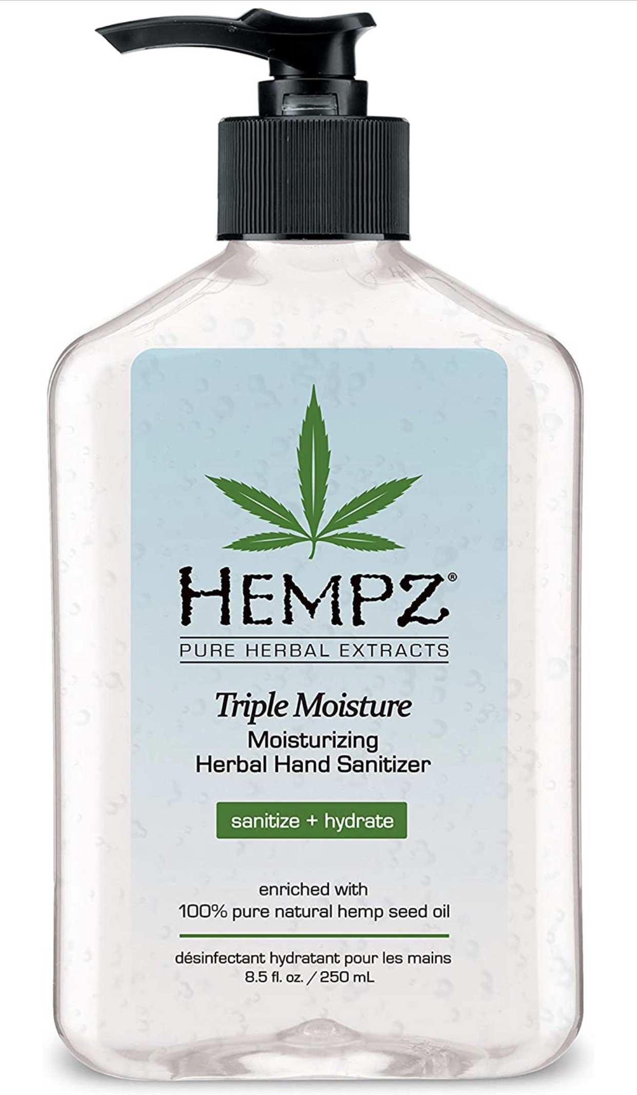 Hempz Triple Moisture Herbal Moisturizing Hand Sanitizer, 8.5 oz. - Scented Antibacterial Gel for Hands - Pump Bottle, Kills 99% of Germs, Grapefruit Fragranced Antiseptic with Skin Hydration
