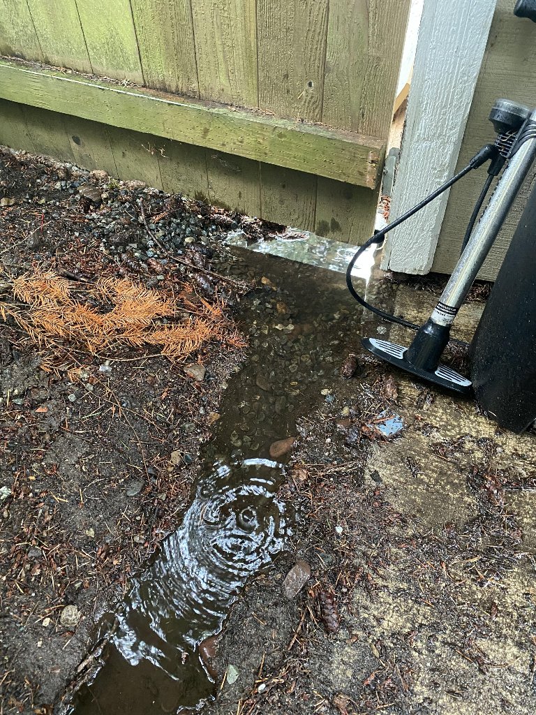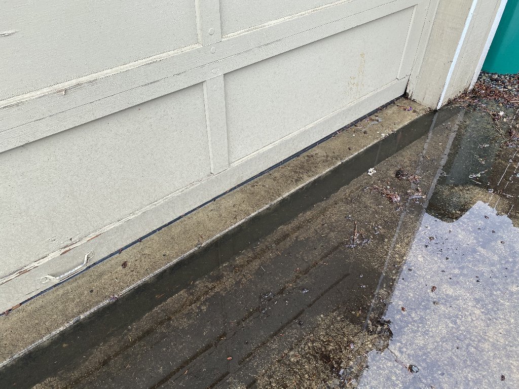 During hard rains water pools up in front of our garage. There's a drainage pipe that goes to the back of the house, but water just pools up there. These pictures were after I was able to dig a trench and let some of that water drain. Does anyone know what type of company or someone that would helps solve this? I imagine we need some screens to prevent debris from clogging the drain pipe and also to extend the pipe in the back so it doesn't pool there.