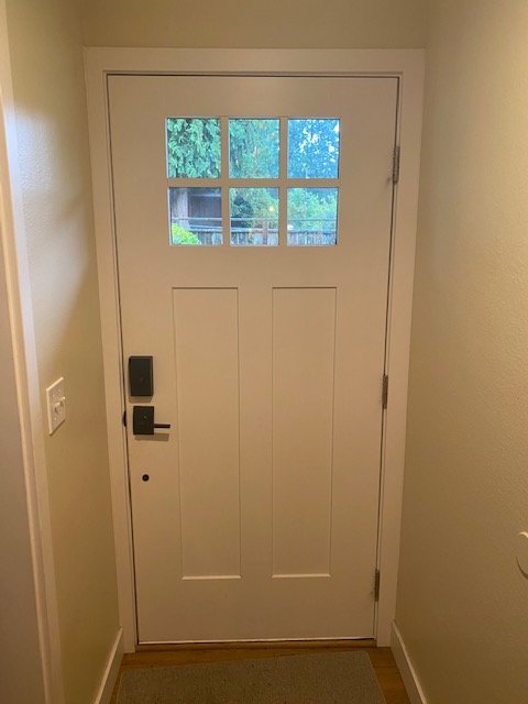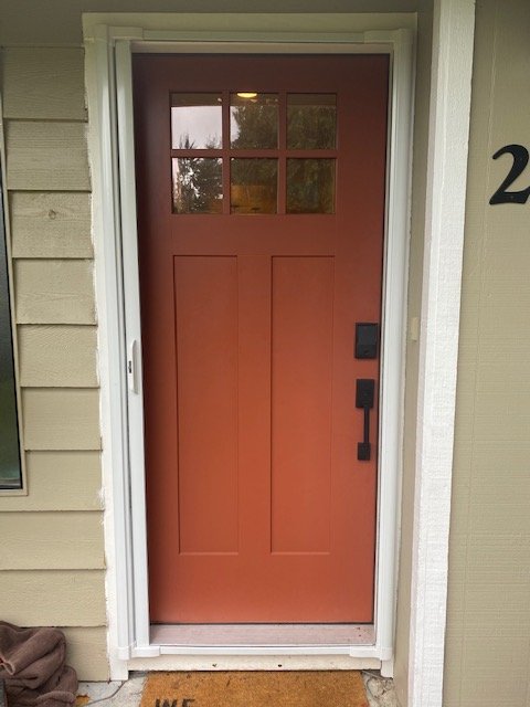 Adam Schlipp from Fairwood Construction, LLC installed a front door for me (along with a new kitchen, bathroom, flooring, interior doors, trim, etc.). I did purchase the door separately, but got a really nice paint ready door from Lowe's for under $300.
