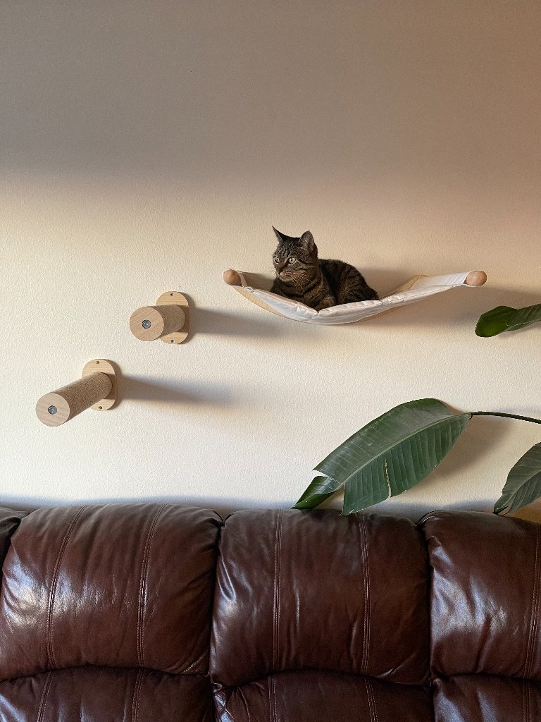 Working from home has turned us into the kinds of people who buy birthday presents for our cat. Hence, this wonderful hammock. Our 10lb loaf loves to sit in it all day. It came with great instructions, extra hanging tools, and has a really nice aesthetic.
