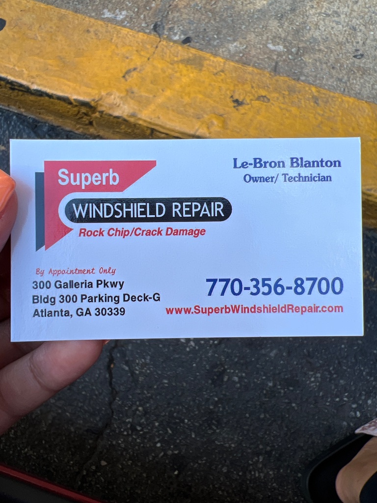 I highly recommend Superb Windshield Repair. The owner, Le-Bron Blanton, takes a lot of pride in his work. He takes time to make sure the repair is done properly. Hopefully I don’t have another rock hit my car window but I’ll be coming back here if it happens again.