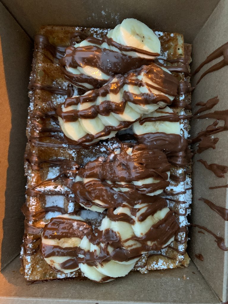 Craving sweets? Go with this Banana Chocolate Waffle. It's delicious. I love this place. It has so many options of waffles combination and beverages.
